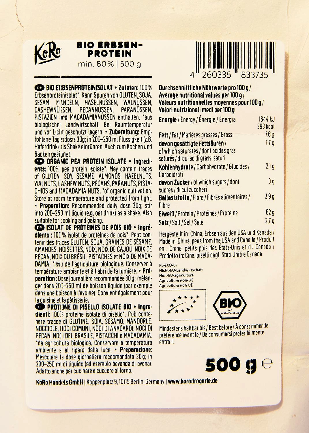 Pulver aus Bio-Erbsenprotein von KoRo kaufen