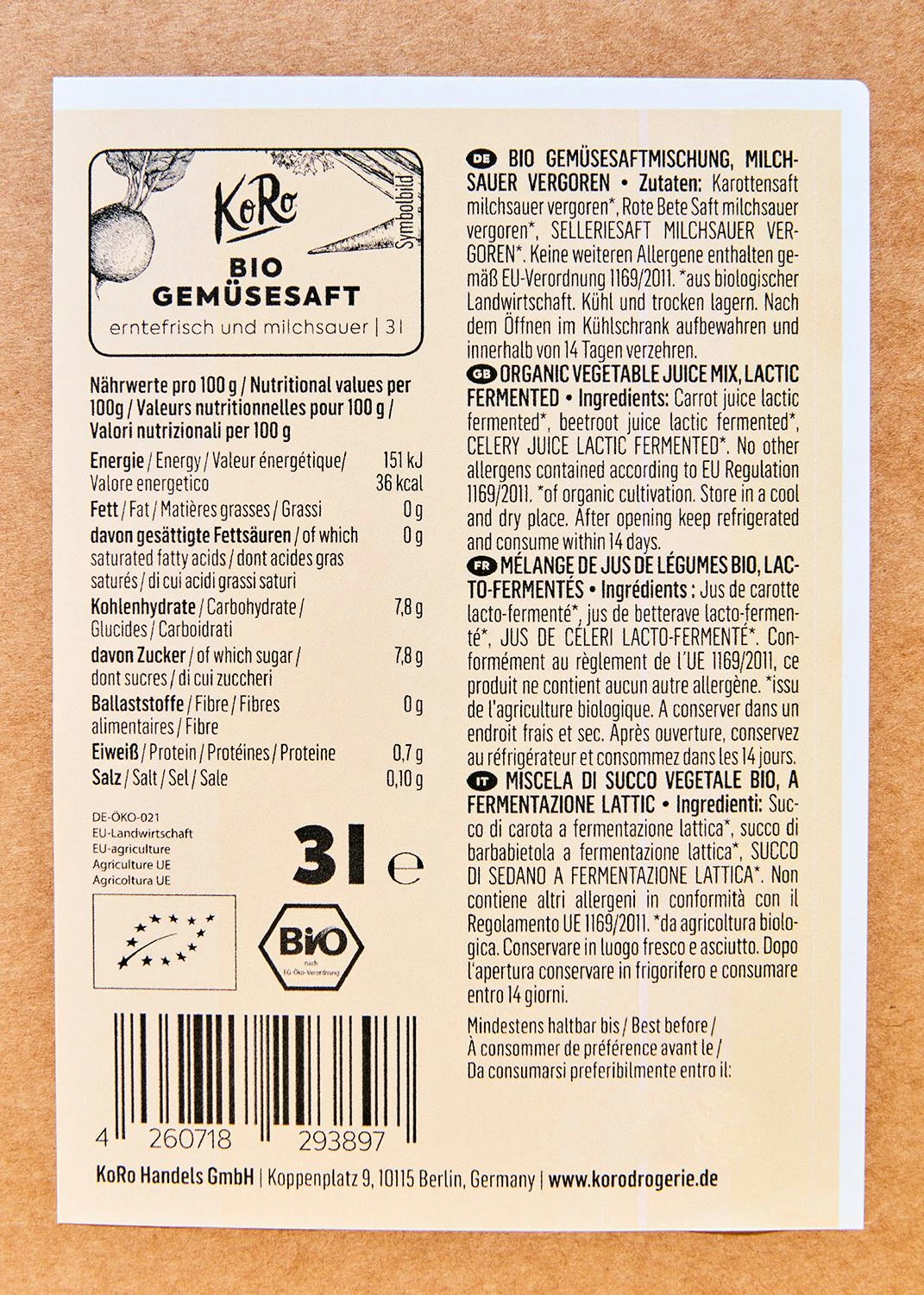 3 L feldfrischen Bio Gemüsesaft von KoRo kaufen