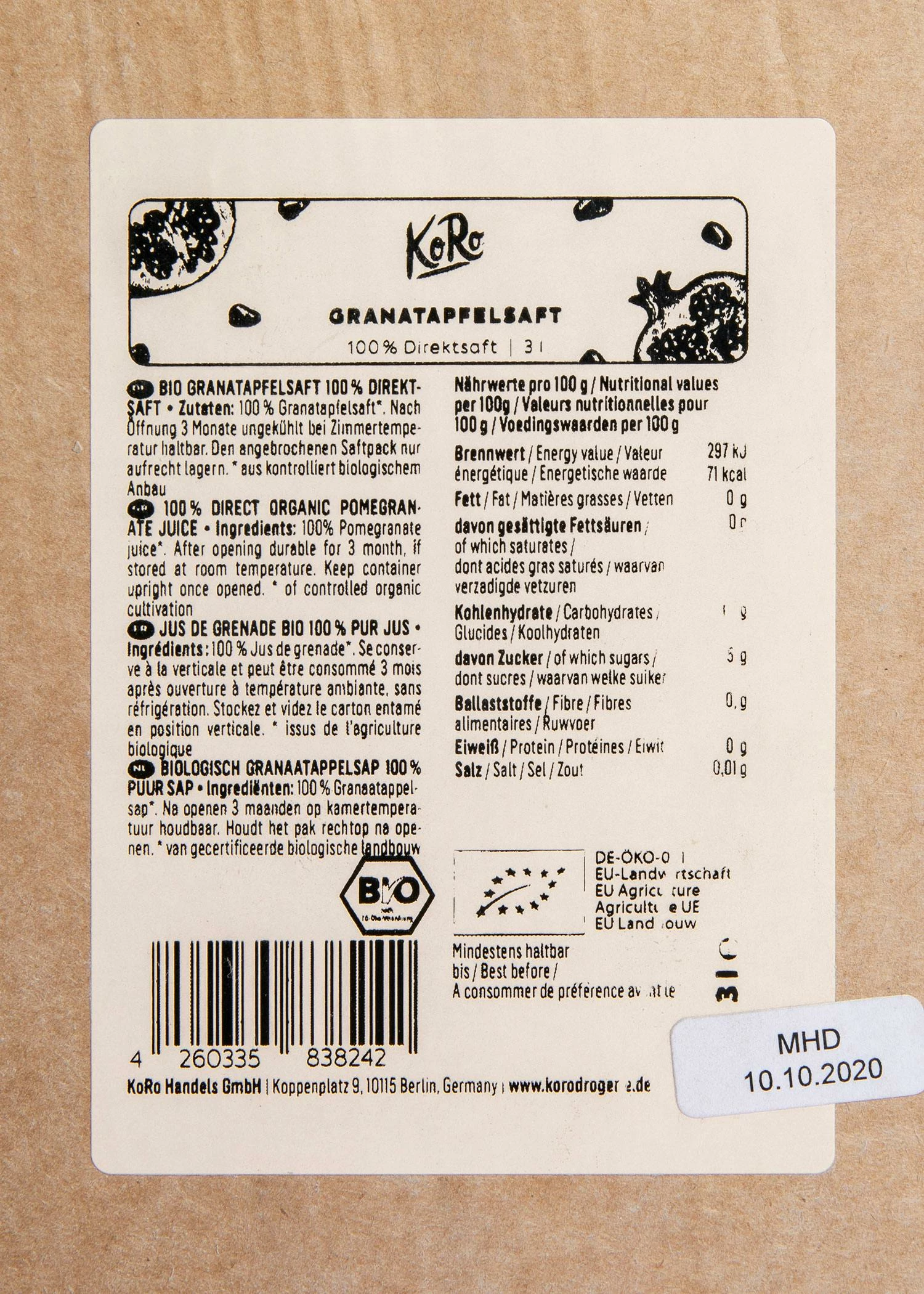 Aromatischen Bio-Granatapfelsaft von KoRo kaufen