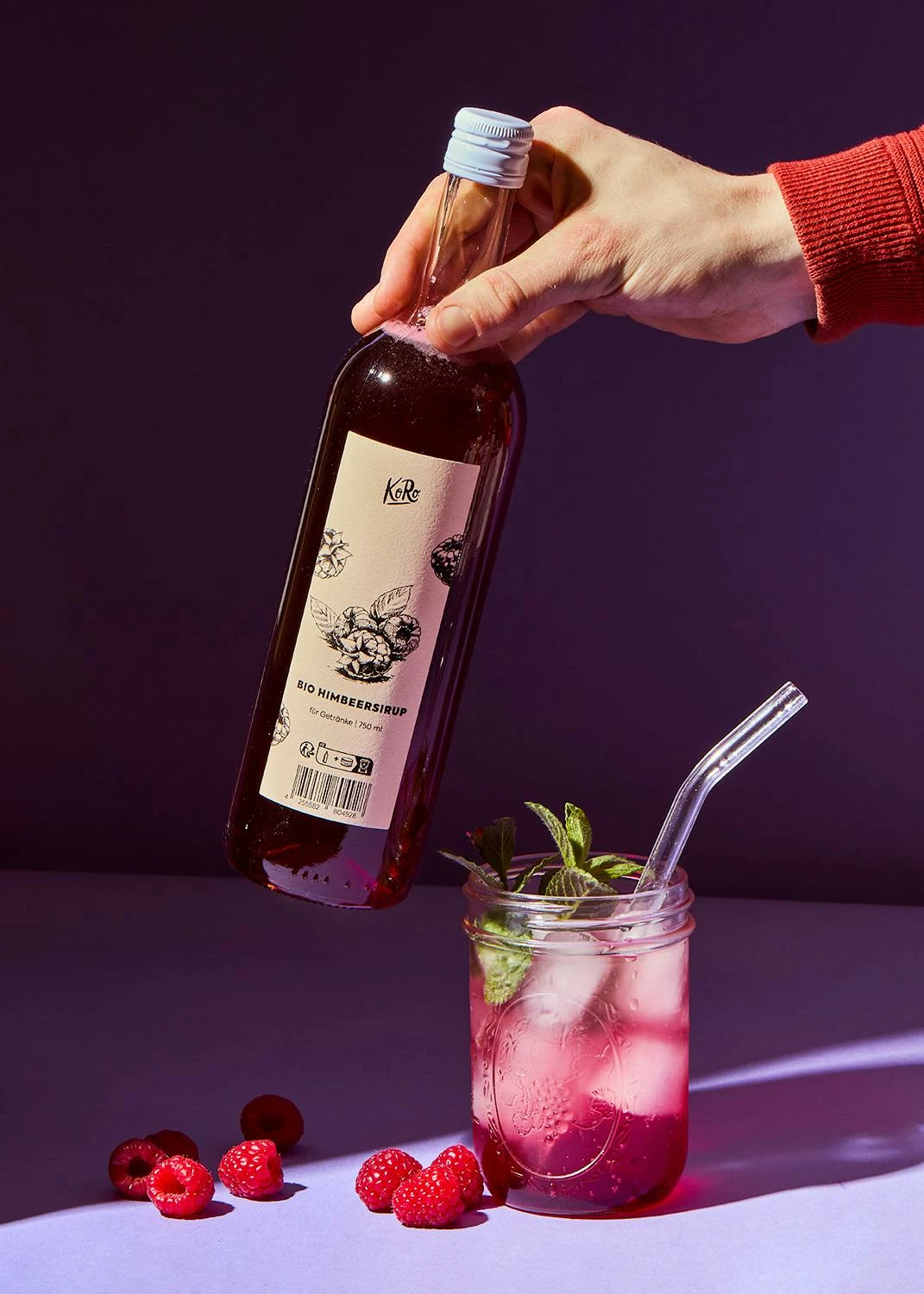 Unser Himbeersirup eignet sich aber nicht nur für eine klassische Himbeerschorle, sondern bietet Dir so viel mehr Möglichkeiten! Wie wäre es zum Beispiel mit einem erfrischenden Sorbet aus gefrorenen Himbeeren, Orangensaft, einer Zuckeralternative Deiner Wahl und unserem Himbeersirup. Oder Du verwendest den Bio Himbeersirup in einem fruchtigen Schichtdessert: Dazu einfach Kekse, beispielsweise unsere Haferkekse mit Schokodrops, klein bröseln und in ein Glas geben, Quark oder Joghurt mit dem Bio Himbeersirup mischen und über die Kekse geben. Mit gefriergetrockneten Himbeeren und Sirup garnieren und servieren! So kannst Du mit wenig Aufwand fruchtige Desserts zaubern und Dich oder Deine Gäste mit besonderen Süßspeisen verwöhnen. Vermischst Du den Sirup mit Puderzucker, kannst Du außerdem fruchtige Glasuren zur Verzierung von Gebäck, Kuchen oder Muffins herstellen. Oder Du verleihst mit unserem Himbeersirup Deinen Cocktails eine feine Himbeernote und entwickelst eigene Kreationen. Der Bio Himbeersirup steuert nicht nur einen fruchtigen Himbeergeschmack bei, sondern verleiht den Cocktails auch eine angenehme Süße. Bestelle Dir jetzt unseren Bio Himbeersirup und entdecke die vielseitigen Anwendungsmöglichkeiten!