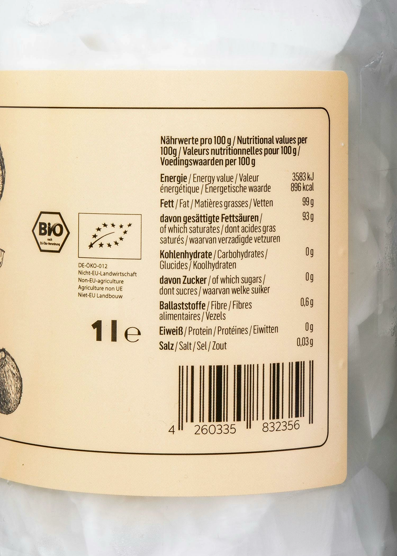 | Sorte | Sonnenblume, Ghee, Desodortierte Kokosnuss |