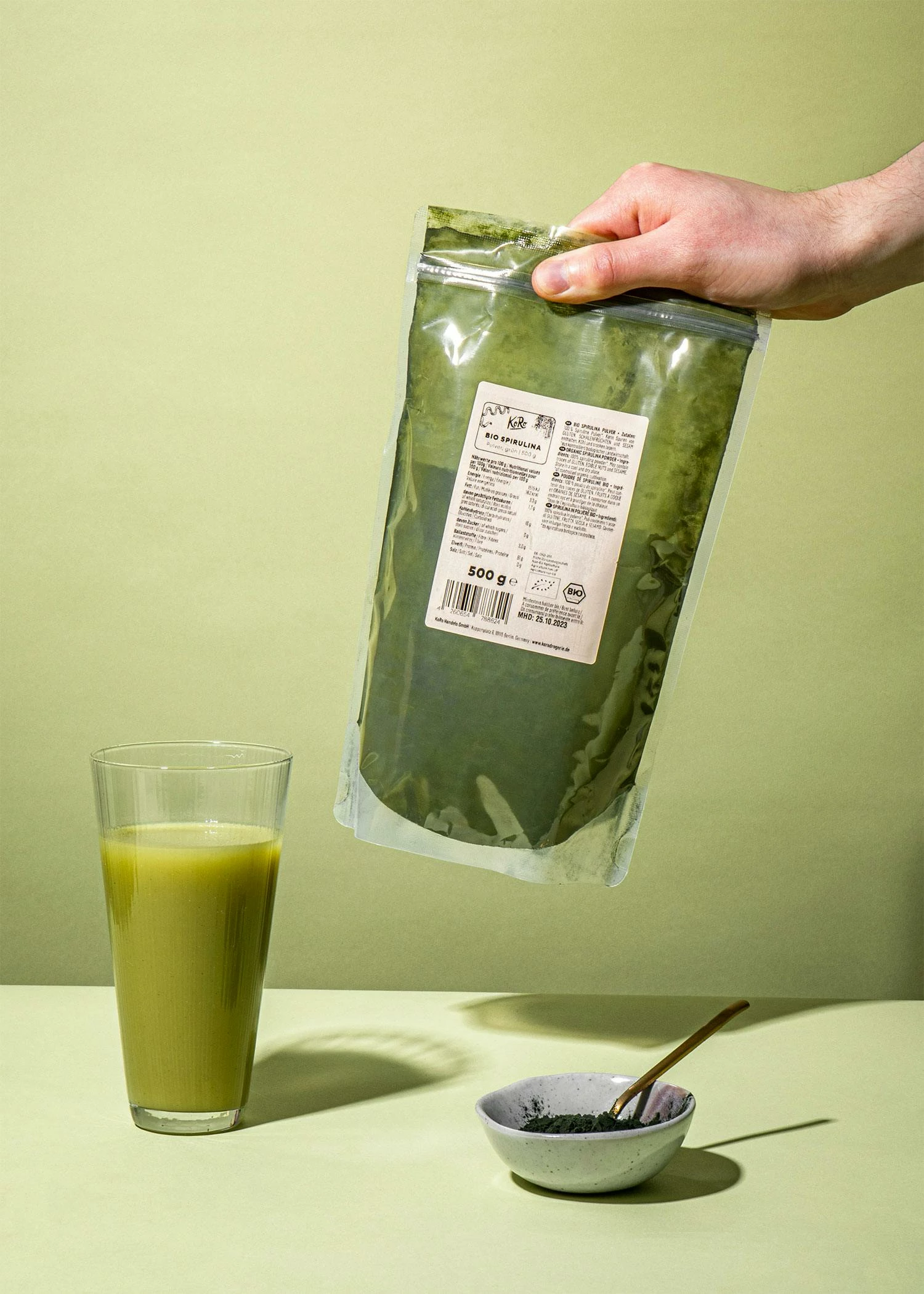 Manchmal langweilt Dich Dein Frühstück? Dann misch doch mal ein bisschen von unserem Bio Spirulina-Pulver in Dein Porridge, Dein Müsli oder in Deinen Shake. Falls Du ein paar Inspirationen brauchst, schau unbedingt mal bei uns im Food Journal vorbei. Hier findest Du neben einem Rezept für eine Spirulina-Smoothie-Bowl noch weitere leckere Rezepte mit Spirulina-Pulver. Aufgrund der guten Löslichkeit eignet sich das Pulver auch als gewisses Extra für jedes Getränk: Ob als Spirulina Latte, als Beigabe im Tee oder als i-Tüpfelchen im Milchshake – Spirulina geht einfach immer! Die Verwendung des Spirulina-Pulvers ist so vielseitig, dass Du jedem Gericht, auch Salaten und Suppen, schon mit nur einem Teelöffel ein farbenfrohes Extra verleihen kannst.