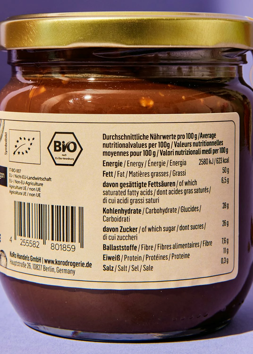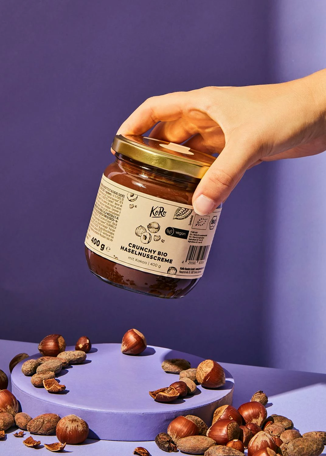 Es ist Crunchtime! Neugierig? Wir wollen nicht lange um die heiße Haselnusscreme herumreden und versprechen Dir, dass es krachen wird! Und zwar genau dann, wenn Du unsere Crunchy Bio Haselnusscreme mit Kakao pur löffelst oder aufs Brot schmierst. Neben ordentlich Biss darf einer Haselnusscreme dennoch natürlich eins nicht fehlen: die Cremigkeit! Mit jedem Bissen unserer Bio Haselnusscreme mit Kakao genießt Du eine feine Konsistenz gepaart mit Haselnussstückchen und einer herrlich schokoladigen Note durch die Zugabe von Kakao! Dann spürst Du die cremig, feine Konsistenz, die gepaart ist mit Haselnussstückchen und einer herrlich, schokoladigen Note durch die Zugabe von Kakao! Na, läuft Dir auch schon das Wasser im Mund zusammen? Dann zögere nicht, sondern bestell‘ Dir jetzt unsere Crunchy Bio Haselnusscreme mit Kakao!