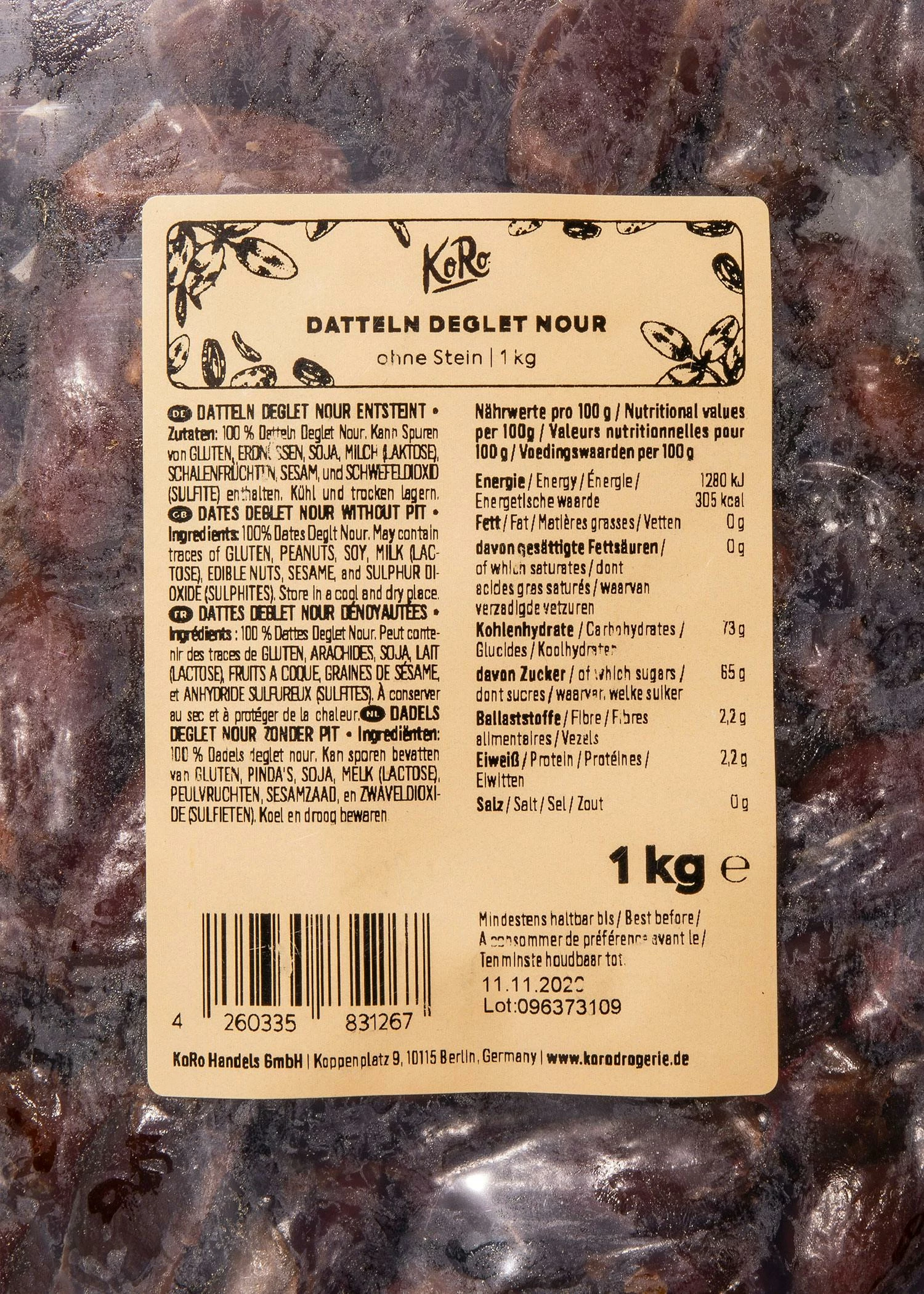 Der Postbote klingelt und Du kannst es nicht abwarten die KoRo-Packung aufzureißen und loszusnacken? Wir kennen’s und haben vorgesorgt! Deshalb bekommst Du unsere Deglet Nour Datteln ohne Stein. Gib unserer Dattel-Prinzessin den Stammplatz in Deiner Vorratskammer, den sie verdient. Überzeuge Dich selbst von ihrer unwiderstehlichen bissfesten und saftigen Konsistenz – einfach purer Karamell-Spaß und das auf natürliche Weise! Worauf wartest Du also noch? Schnapp Dir jetzt 1 kg der schonend getrockneten und honigsüßen Deglet Datteln!