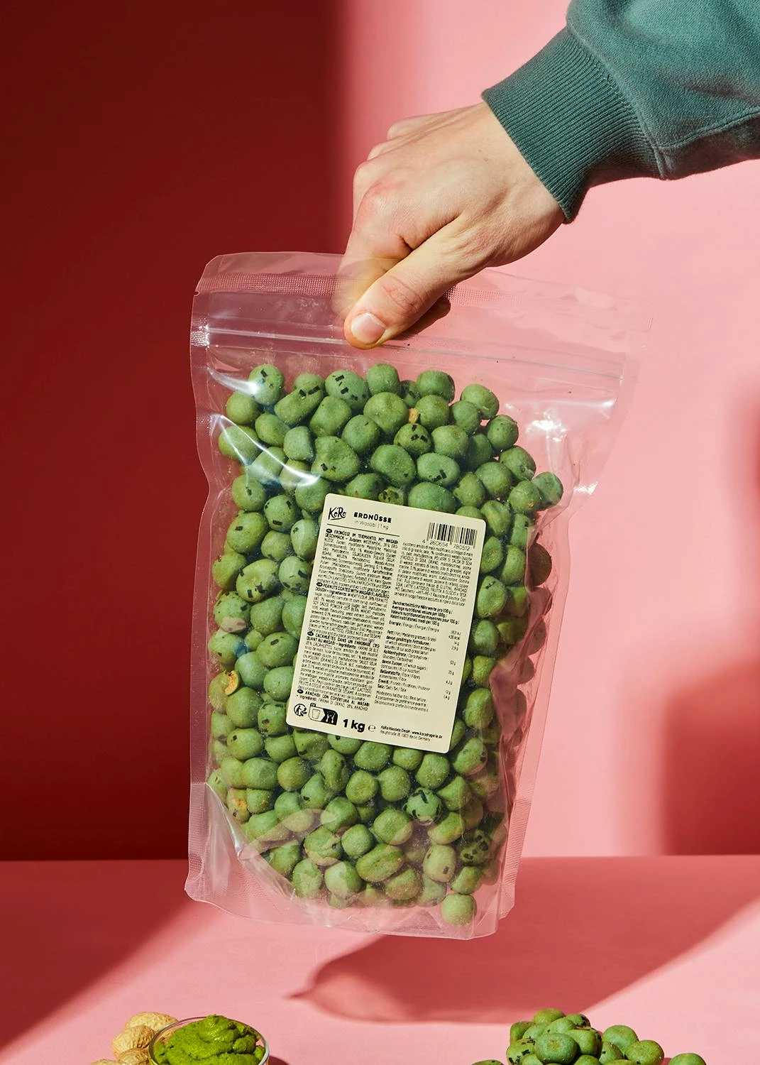 Klingt lecker, aber was ist überhaupt Wasabi? Wasabi gehört zu der Familie der Kreuzblütengewächse und wurde ursprünglich in Japan angebaut. Er ist daher auch unter dem Namen Japanischer Meerrettich bekannt, allerdings hat er mit Meerrettich nur die Gewächsfamilie gemeinsam. Im Inneren unserer Erdnüsse mit Wasabi verbergen sich dann, wie der Name schon sagt, die schmackhaften Erdnüsse. Funfact: Wusstest du, dass die Erdnuss eigentlich gar keine Nuss ist, sondern eine Hülsenfrucht die unter der Erde wächst?!
