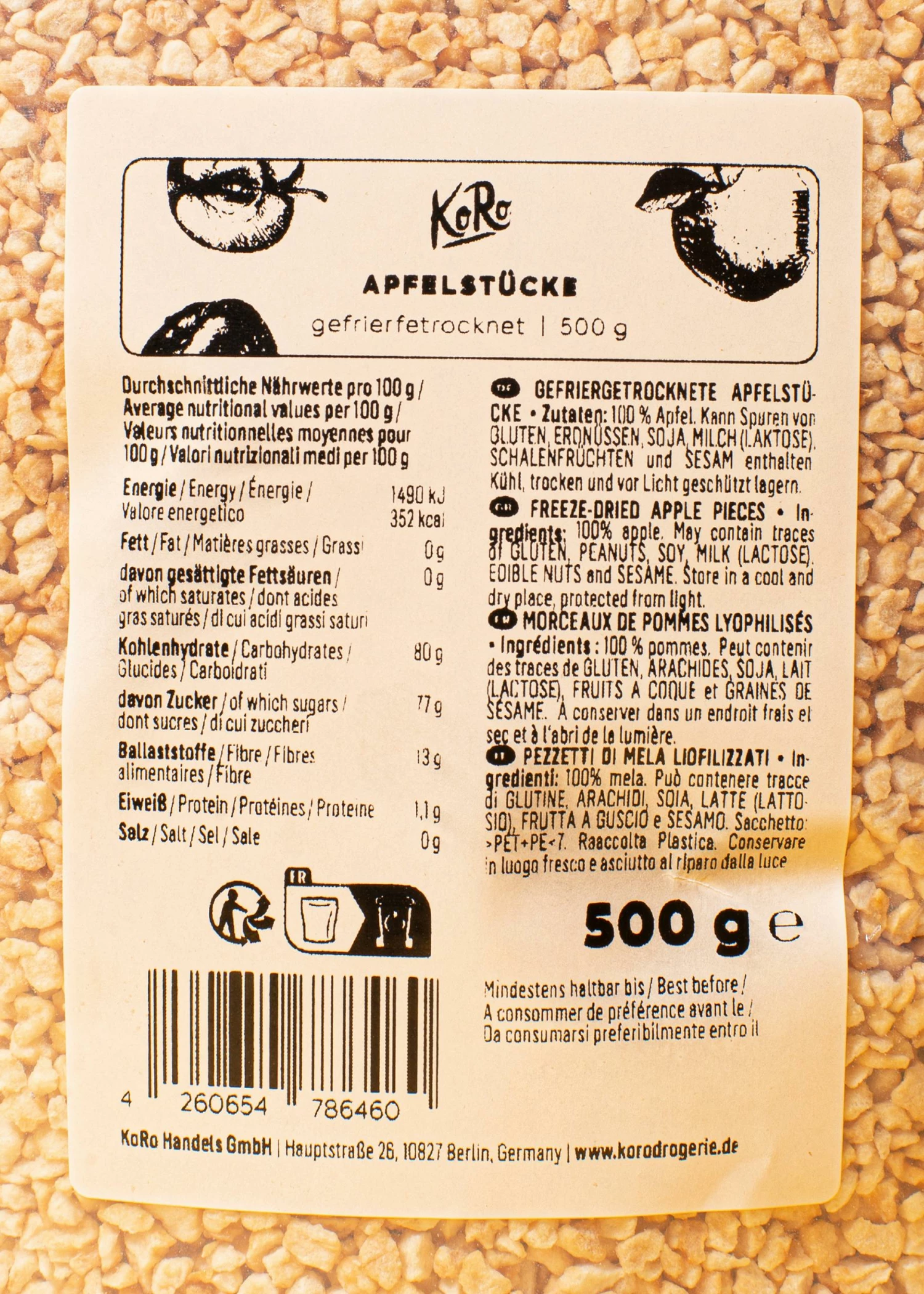 Anders als das meiste Trockenobst oder Dörrobst aus dem Supermarkt, sind unsere getrockneten Apfelstücke ungeschwefelt. Bei KoRo landet nur 100 % naturbelassener Apfel ohne Farb-, Geschmacks- und Konservierungsstoffen in der Tüte. Unsere reifen und aromatischen Äpfel ermöglichen uns zudem den Verzicht auf Zuckerzusatz jeglicher Art. Getrocknete Apfelstücke von KoRo überzeugen allein durch Hochwertigkeit und natürlich-fruchtigen Geschmack. Überzeuge Dich selbst und kaufe Dir unsere gefriergetrockneten Apfelstücke!