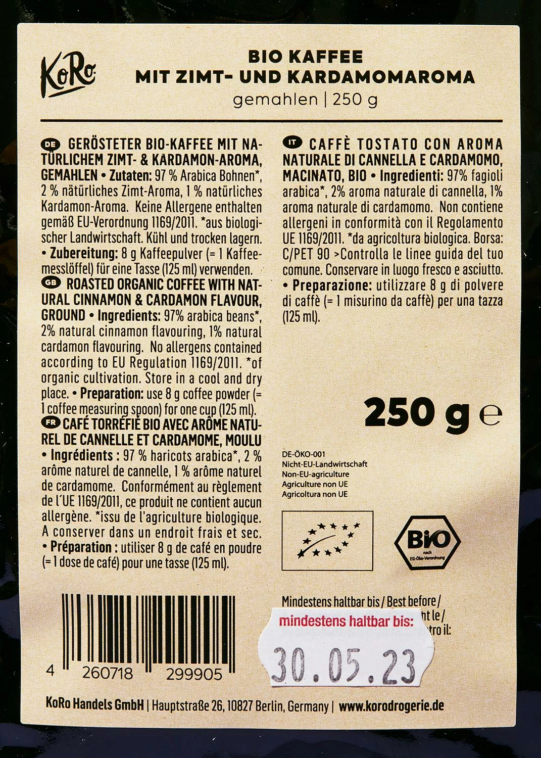 Den wahren Kaffeeliebhaber:innen ist es sicher schon aufgefallen: KoRo ist ein Paradies für aromatisierten Kaffee! Egal, ob Schoko, Vanille, Haselnuss, Karamell oder jetzt auch Kardamom & Zimt – hier findest Du alles, was Dein Herz begehrt! Selbstverständlich bekommst Du bei uns außerdem herkömmlichen Kaffee, wie unseren Kaffee Crema – in gemahlener Form oder als ganze Bohnen. Schau am besten Mal bei unserem Kaffee-Sortiment vorbei!