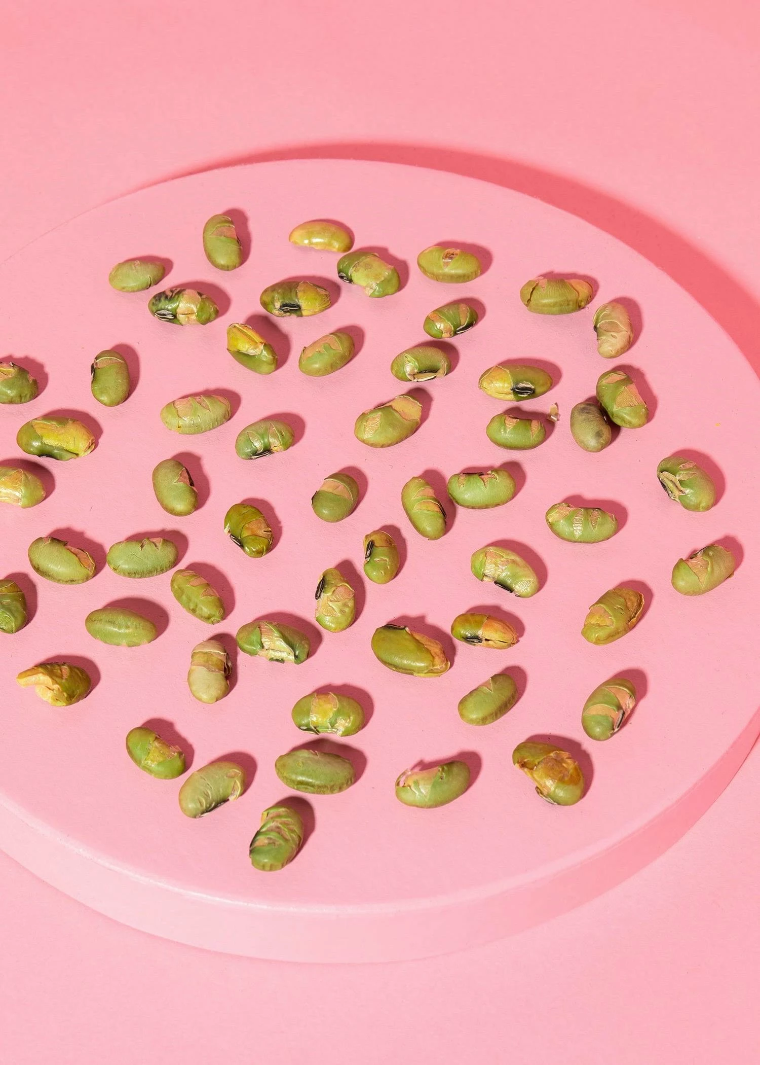 Eine grüne Hülsenfrucht soll der neue Ersatz für die geliebten Kartoffelchips und Popcorn sein? Klingt komisch, ist aber wahr: Mit einem leicht-nussigen und milden Geschmack macht die Edamame fettigen Kartoffelchips ordentlich Konkurrenz. Die gerösteten Edamamen verfeinern wir nur mit einer kleinen Prise Salz, keine Zusatzstoffe, keine Geschmacksverstärker – natürlich Snacken kann so einfach sein! Wenn Du Lust auf etwas Abwechslung hast, kannst Du die getrockneten Edamamen auch in Hummus oder würziger Guacamole dippen. Durch das angenehm-salzige Aroma eignet sich die gerösteten Edamame nicht nur als Snack, sondern auch als Beigabe im Salat oder als knackige Komponente in Deiner Bowl.