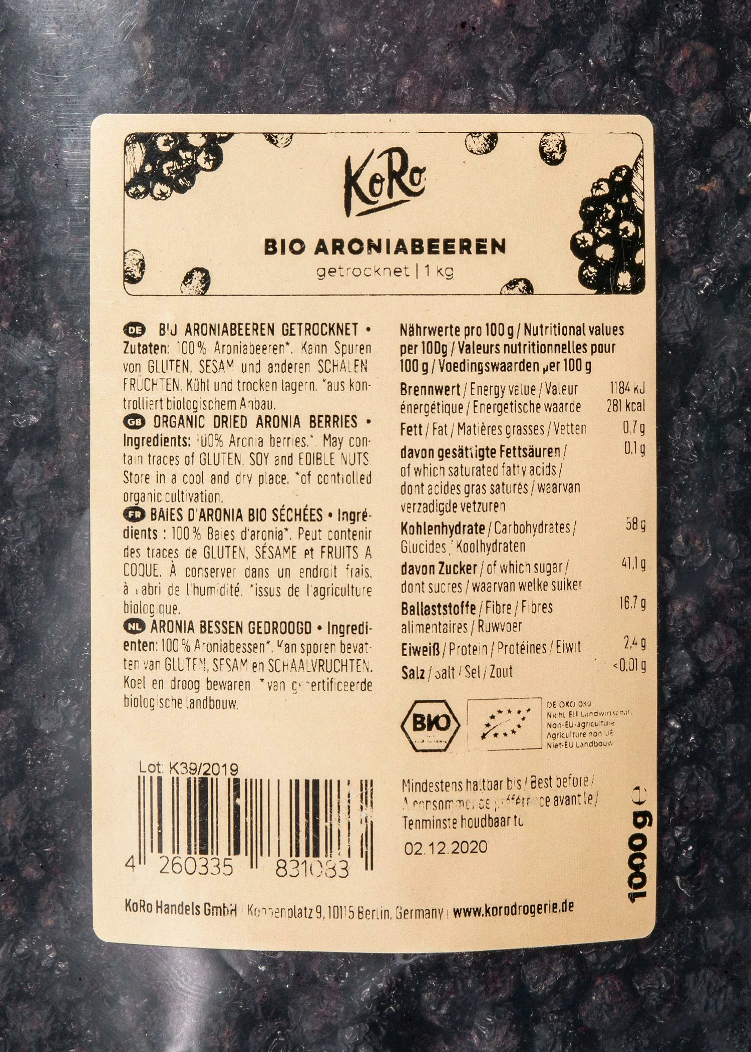 Auch wenn die Früchte beim Pflücken zum Anbeißen lecker aussehen, wird aufgrund des Blausäure-Gehalts häufig davor gewarnt, sie roh zu essen. Kleine Entwarnung, der Konsum roher Aroniabeeren ist in geringen Mengen völlig unbedenklich – trotzdem empfehlen wir Dir auf die getrockneten Aroniabeeren zurückzugreifen. Diese enthalten durch den Verarbeitungsprozess keine schädlichen Stoffe mehr und schmecken außerdem um Längen besser! Das ist auch der Grund, warum wir die frischen Beeren trocknen. So musst Du sie vor dem Verzehr – am besten über Nacht – einfach in Wasser einweichen lassen, bis sie eine angenehme Konsistenz haben und kannst sie genießen.