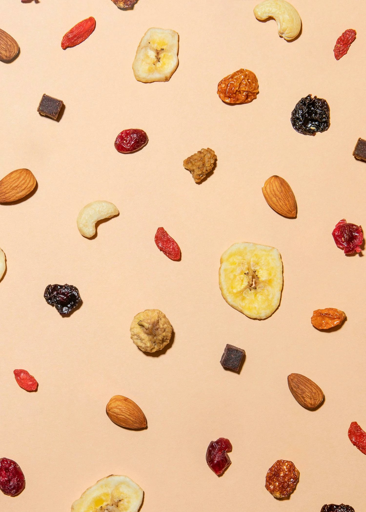 Insgesamt zehn Sorten warten darauf, von Dir getestet zu werden: Cranberries, Maulbeeren, Bananenchips, Mandelkerne, Zwergfeigen, Sauerkirschen, Cashewkerne, Gojibeeren, Physalis und eine Açaizubereitung. Danach liegt es an Deinem professionellen Gaumen, welche Produkte Du unbedingt nachkaufen musst, und welche nicht Dein Geschmack gewesen sind. Aber verfluche uns bitte nicht, wenn danach alle 10 im Großformat bei Dir Zuhause landen. Unsere Mischung ist quasi das Upgrade zu langweiligem Studentenfutter (und noch dazu ohne Rosinen!). Du kannst sie zum Lernen oder neben der Arbeit wegsnacken, als Topping auf Deinem Müsli verwenden, oder damit Deine Backwaren verfeinern. Hier kriegst Du genau die richtige Mischung aus süß und sauer, weich und knusprig, Nuss und Frucht. Einfach die beste Nuss-Frucht-Mischung überhaupt!