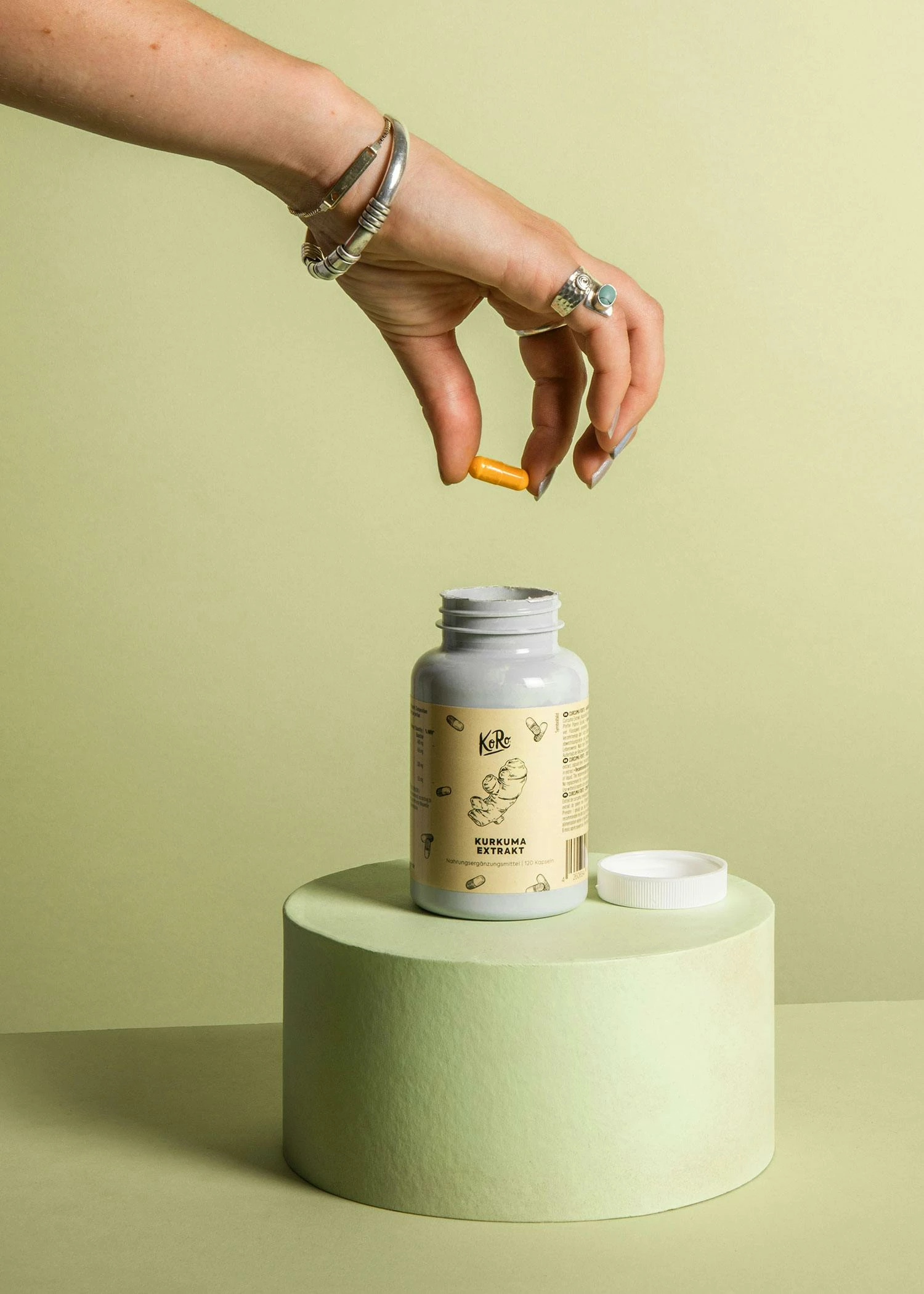 Kurkuma gehört zu einer Pflanzenart innerhalb der Familie der Ingwergewächse. Die Kurkumapflanze stammt aus dem asiatischen Raum und wird vielfach in den Tropen kultiviert. Lediglich der untere Teil der Staude, welcher dem Ingwer ähnelt, wird zur Weiterverarbeitung genutzt. Weltweit gilt die Knolle als eine wahre Bereicherung: Sie kommt mit einem charakteristischen Duft, einer leuchtend gelben Farbe und einem intensiven Geschmack – und hat uns regelrecht verzaubert! Ihre Farbe hat die Knolle dem natürlichen Farbstoff Curcumin zu verdanken und sorgt so für die typische Farbe in Currys, Kapseln oder Shots. Während in Deiner Nachbarschaft der Kurkumashot noch mit Pfeffer nachgewürzt und danach mit zugehaltener Nase heruntergespült wird, hast Du es bald viel einfacher. Denn wir vereinen Kurkuma und Pfeffer in einer Kapsel. So kannst Du Deinen Tag ganz ohne grässlichen Nachgeschmack starten. Warum nicht einfach nur pure Kurkumakapseln? Ganz einfach: Unsere Kapseln enthalten neben 95 % Curcumin noch Kurkumapulver und Pfefferextrakt. Der Pfefferextrakt enthält 95 % Piperin und kann dazu beitragen, die Bioverfügbarkeit von Kurkuma zu erhöhen. Natürlich ist die Wirkung im Körper von Mensch zu Mensch unterschiedlich. Auch der Stoffwechsel spielt eine Rolle dabei, wie gut oder schlecht ein Nährstoff aufgenommen wird. Wenn Du gerade dabei bist, Dich mit Nahrungsergänzungsmitteln zu beschäftigen, dann schau doch mal bei unseren anderen Supplements vorbei.
