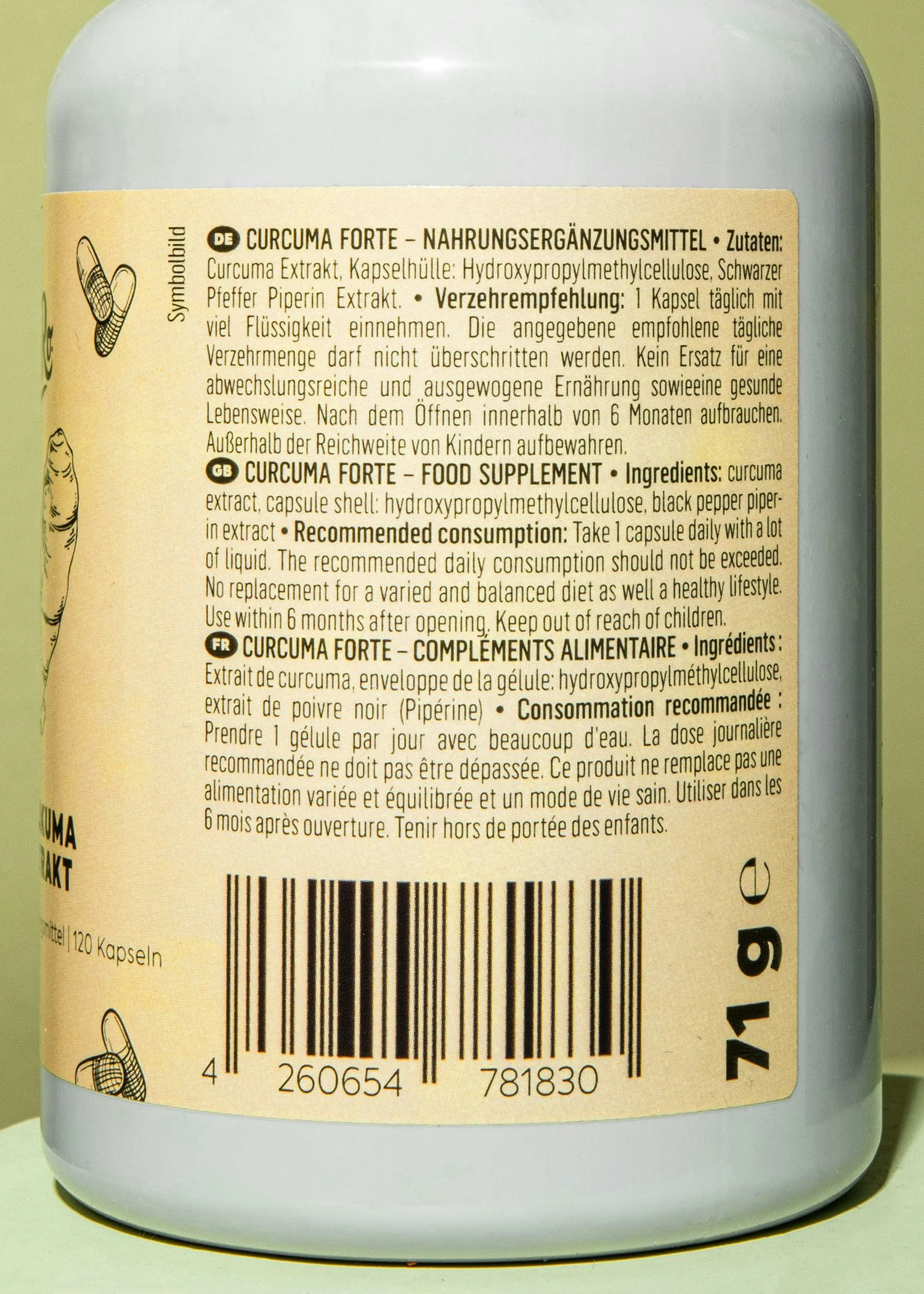 Wer die beiden Gewürze also schon fleißig in der Küche lieben gelernt hat, der kann nun die Kombination von Kurkuma und Pfeffer in Kapseln als Nahrungsergänzungsmittel ausprobieren. Das hochdosiertes Nahrungsergänzungsmittel wird Dir in einer Packung mit 120 Stück geliefert, sodass Du für eine längere Zeit mit ausreichend Kapseln versorgt bist. Beachten solltest Du, dass Du unsere Kapseln nur alle 2 Tage unzerkaut und mit reichlich Wasser einnehmen solltest. Bestell Dir jetzt unsere Kurkumakapseln!