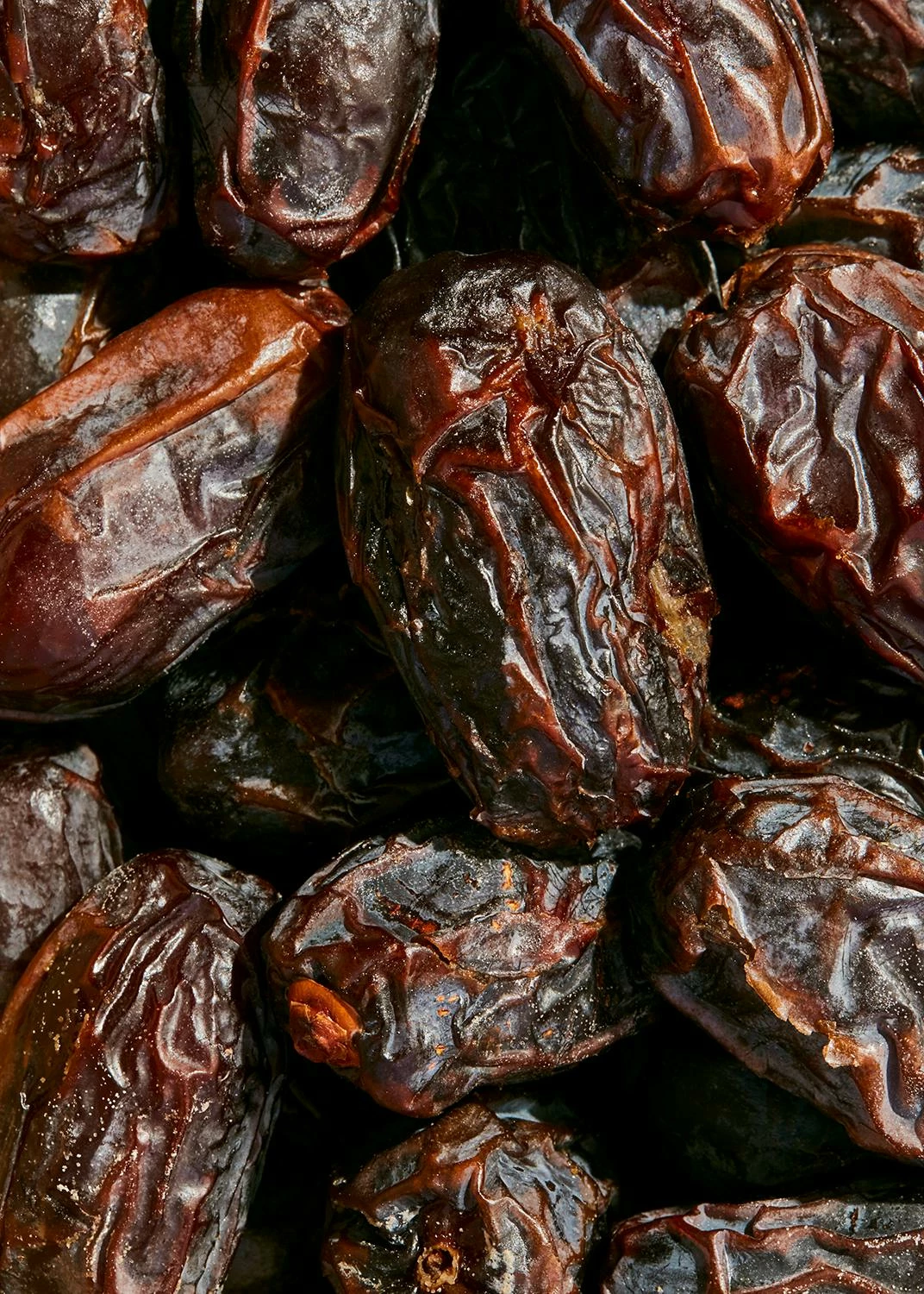 Ursprünglich kommen Medjool Datteln aus Marokko, inzwischen findest Du sie aber auch in Tunesien, Palästina, Israel und sogar Kalifornien. Dort können die Dattelpalmen dank der sandigen Böden und sommerlichen Temperaturen wunderbar heranwachsen. Bis es zu großen Erträgen kommt, dauert es jedoch eine Weile – ganze 6 bis 8 Jahre! Doch das Warten lohnt sich, denn dann können die Bäuer:innen bis zu 100 kg der schmackhaften Frucht ernten! Dafür klettern sie auf die fast 20 Meter hohen Pflanzen und schlagen die reifen Datteln einzeln per Hand ab. Damit auch wir in Deutschland und Europa in den Genuss der karamellig-süßen Medjool Datteln kommen können, werden die frischen Früchte zuletzt schonend getrocknet und somit länger haltbar gemacht.
