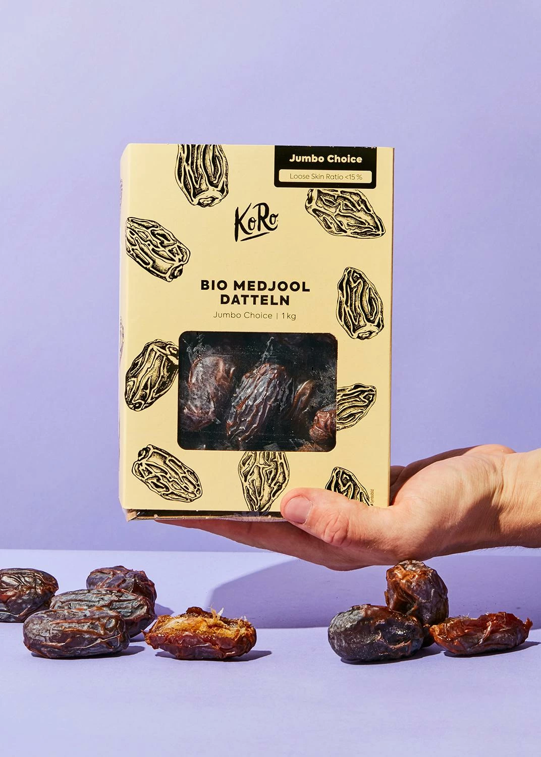 KoRo steht für Großpackungen – da ergibt es nur Sinn auch große Lebensmittel in unser Sortiment aufzunehmen, wie die Jumbo Choice Medjool Datteln, in deren Genuss Du hoffentlich bereits (gefüllt mit Nussmus) gekommen bist?! Was hat es dann mit dieser neuen Sorte auf sich, fragst Du Dich? Ganz einfach, die extra großen, getrockneten Datteln haben Bio-Qualität! Probiere jetzt unsere Bio Medjool Datteln in der praktischen 1 kg-Packung und lass Dich vom süßen Geschmack und der soften Konsistenz begeistern!