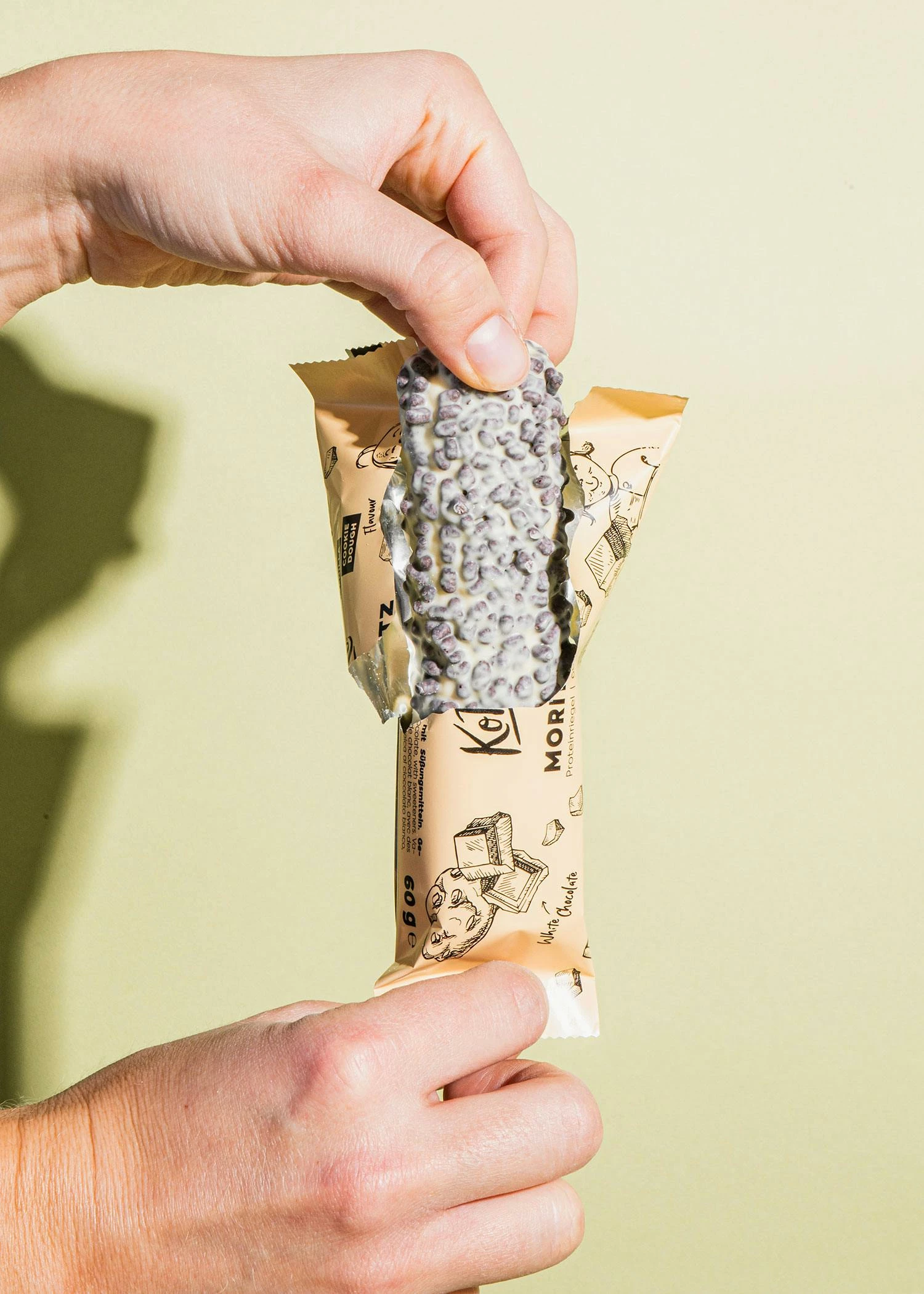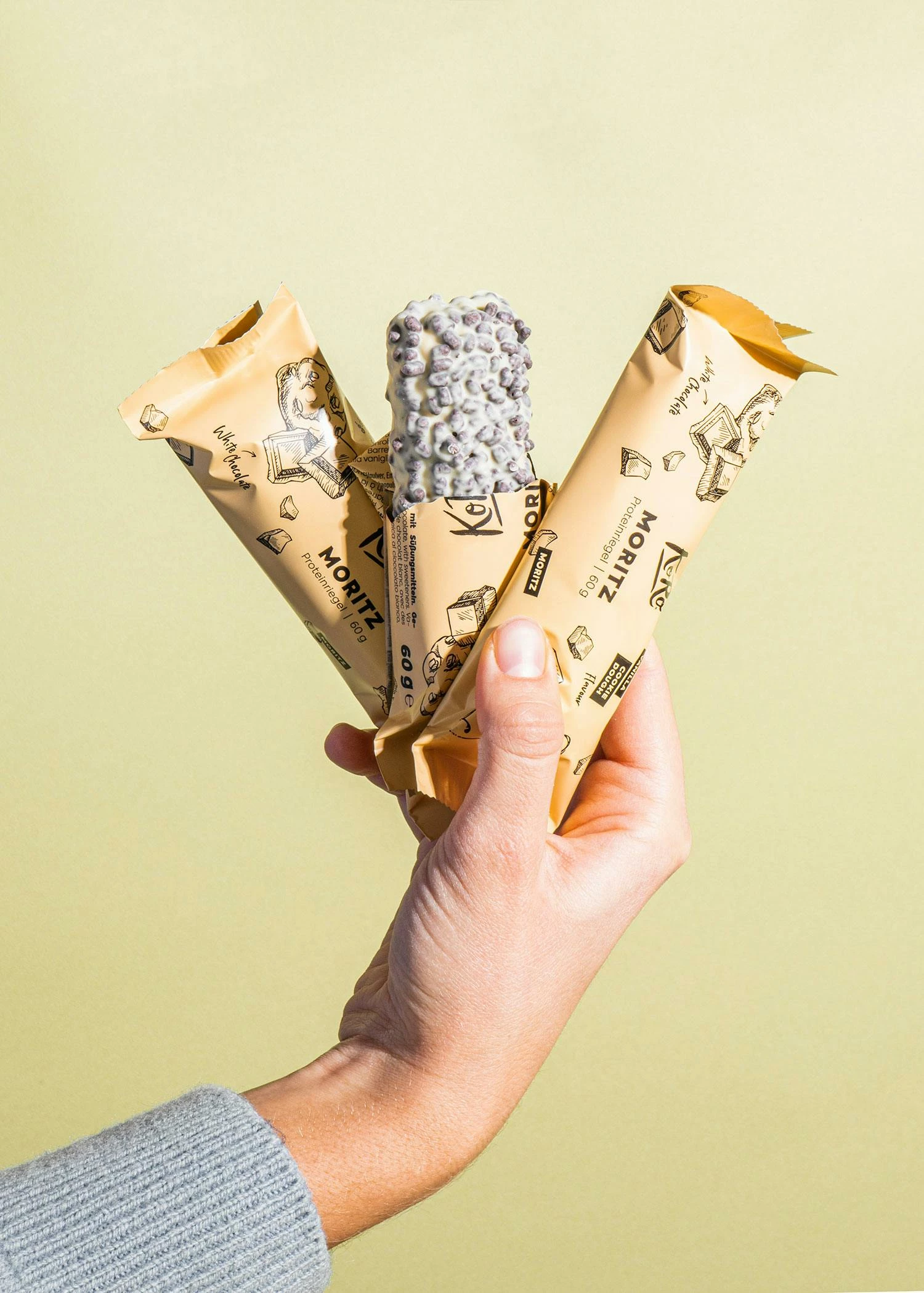 PS: Was wäre Moritz ohne Max? Probiere unbedingt auch den zweiten Protagonisten unseres frechen Duos: Der Proteinriegel Max besticht mit einer zartschmelzenden Hülle aus Vollmilchschokolade und einem kräftigen Kern mit intensivem Schoko-Cookie-Geschmack.
