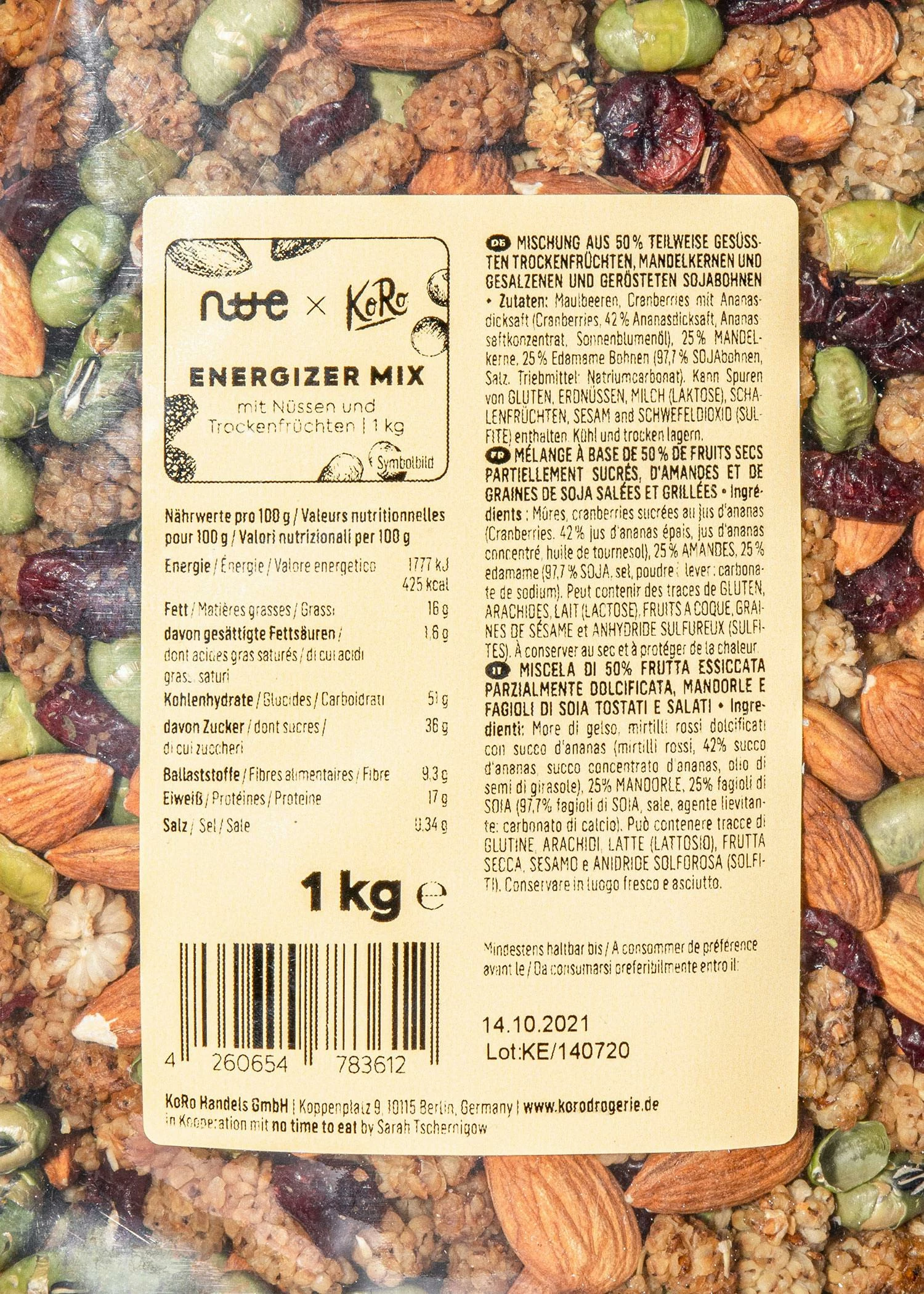 In Zusammenarbeit mit Sarah von No Time To Eat haben wir lange getüftelt, gemischt und genascht, bis wir den idealen Mix aus all unseren liebsten Trockenfrüchten und Nüssen gefunden haben. Herausgekommen ist ein bunter Mix aus Maulbeeren, Cranberries mit Ananasdicksaft, Mandelkernen und gesalzener Edamame. Kurzum: die ideale Mischung aus salzig und süß. Wie Studentenfutter – nur nochmal viel besser. Schnapp‘ Dir diesen umwerfenden Snack-Mix am besten schnell, bevor das KoRo-Team das gesamte Lager leernascht.