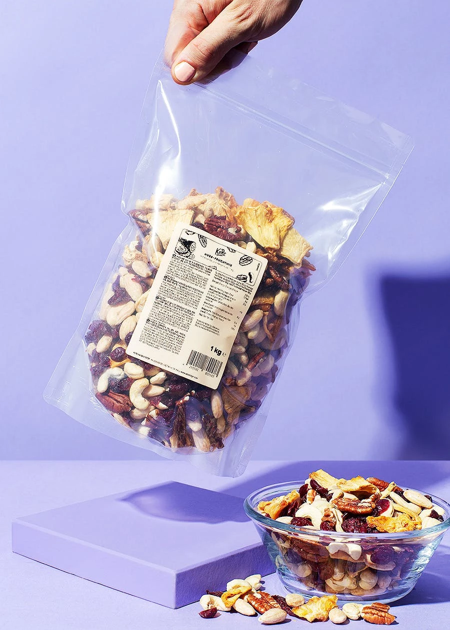 Was haben Schlaf, Socken und Nussmischungen gemeinsam? Man kann nie genug davon haben! Deshalb haben wir bei KoRo es uns nicht nehmen lassen, uns neben unseren unzähligen Nussmischungen noch eine weitere einfallen zu lassen: unseren neuen, bunten Snack-Mix. Ein Ensemble aus weichen, süßen Trockenfrüchten und knackigen, salzigen Nüssen mit hohem Ballaststoffgehalt, verpackt in der preisgünstigen 1 kg-Großpackung – die Mischung, von der Du bis jetzt nicht wusstest, dass Du sie brauchst, die Du in Zukunft aber nicht mehr missen willst. Und das ganz ohne Rosinen und diesmal nicht nur für Studierende! Jetzt bestellen!