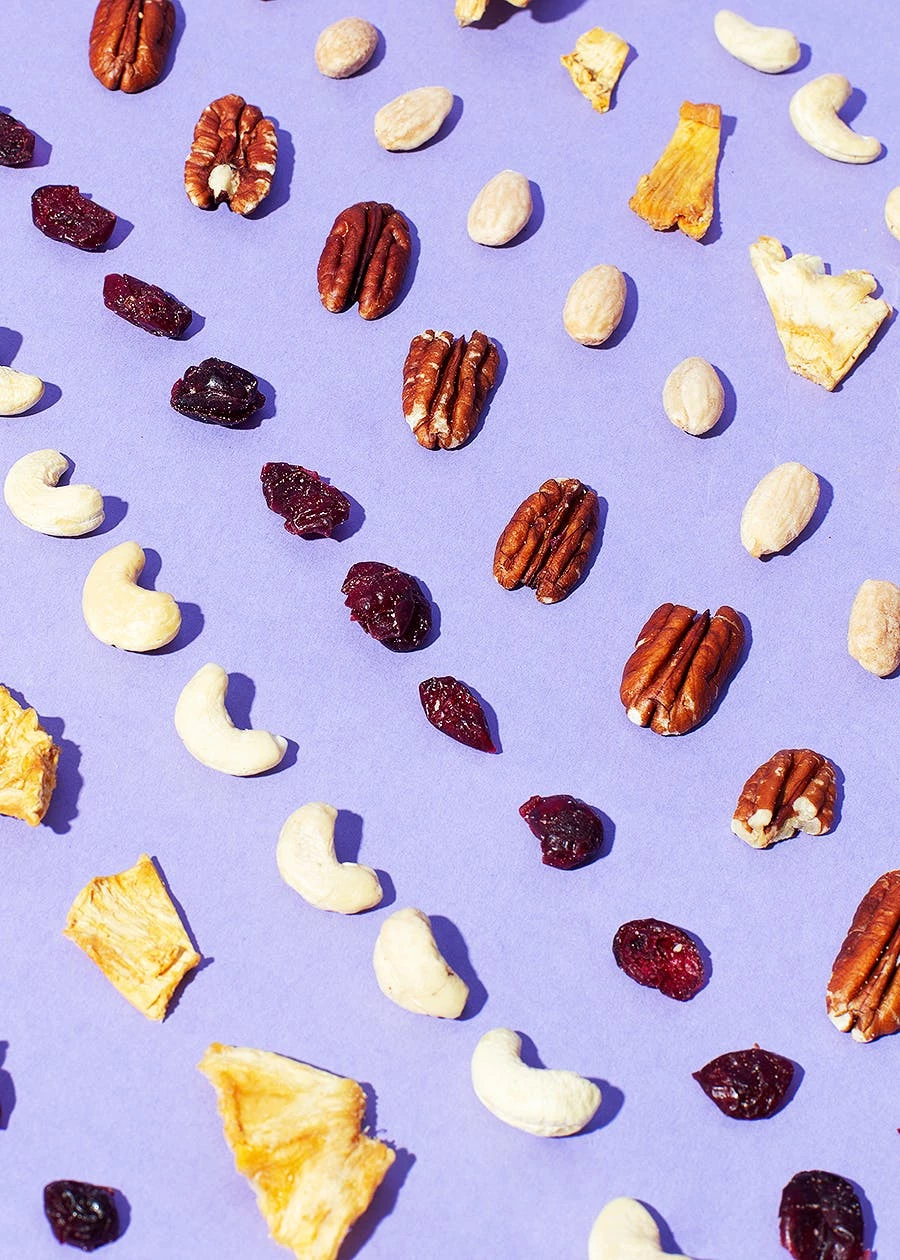 Wer uns schon länger kennt, weiß, dass wir nicht nur Nüsse und Trockenfrüchte können, sondern auch die Kunst beherrschen, beides sensationell zu kombinieren! Fabelhafte Beispiele dafür sind unser Snack Mix oder der Trail Mix „Nuts and Nibs“. Der nächste Gegenstand unserer Beweisführung: der salzig-süße Nuss-Frucht-Mix! Er bringt Dich hervorragend durch den stressigen Büro- oder Uni-Alltag und versüß-salzt Dir Deinen nächsten Netflix-Marathon. Der Mix ist außerdem ein himmlisches Topping für Dein Müsli und eignet sich auch wunderbar zum Backen. Es kommt sogar noch besser: Die bunte Mischung aus knackigen Nusskernen und weichen bis bissfesten Früchten hat einen hohen Ballaststoffgehalt und ist selbstverständlich auch für die vegetarische und vegane Ernährungsweise geeignet – also DER Snack schlechthin.